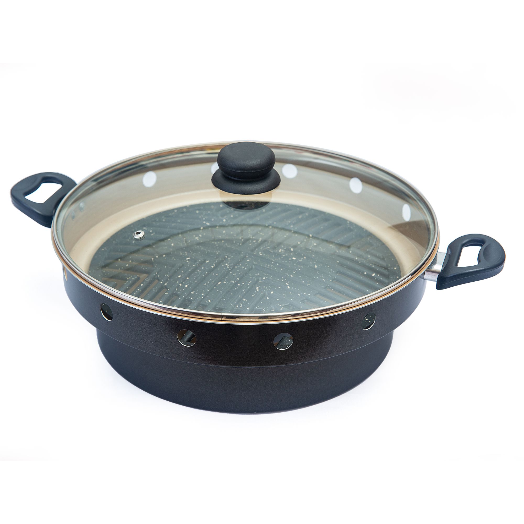 Grelha fundida em alumínio com 3 Camadas de Antiaderente para garantir que o alimento não grude durante o preparo, falicitando também a sua limpeza.